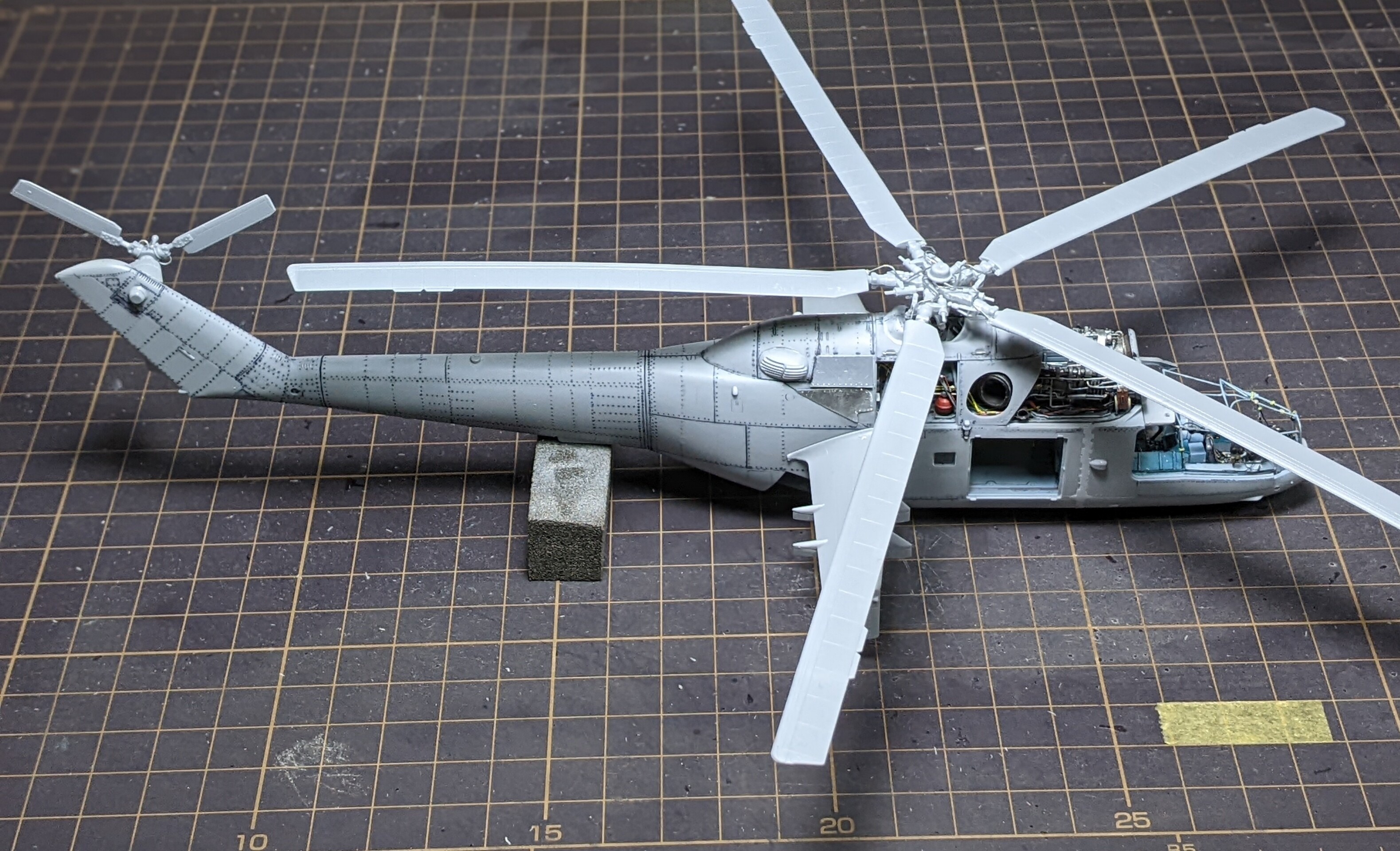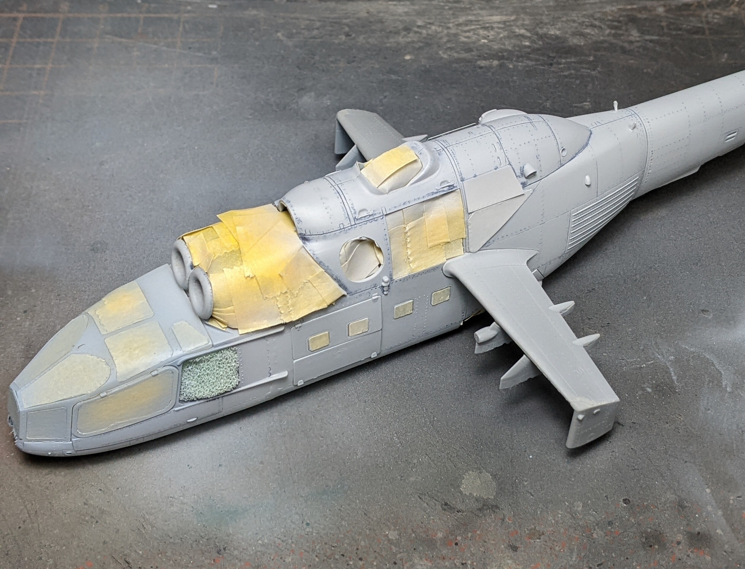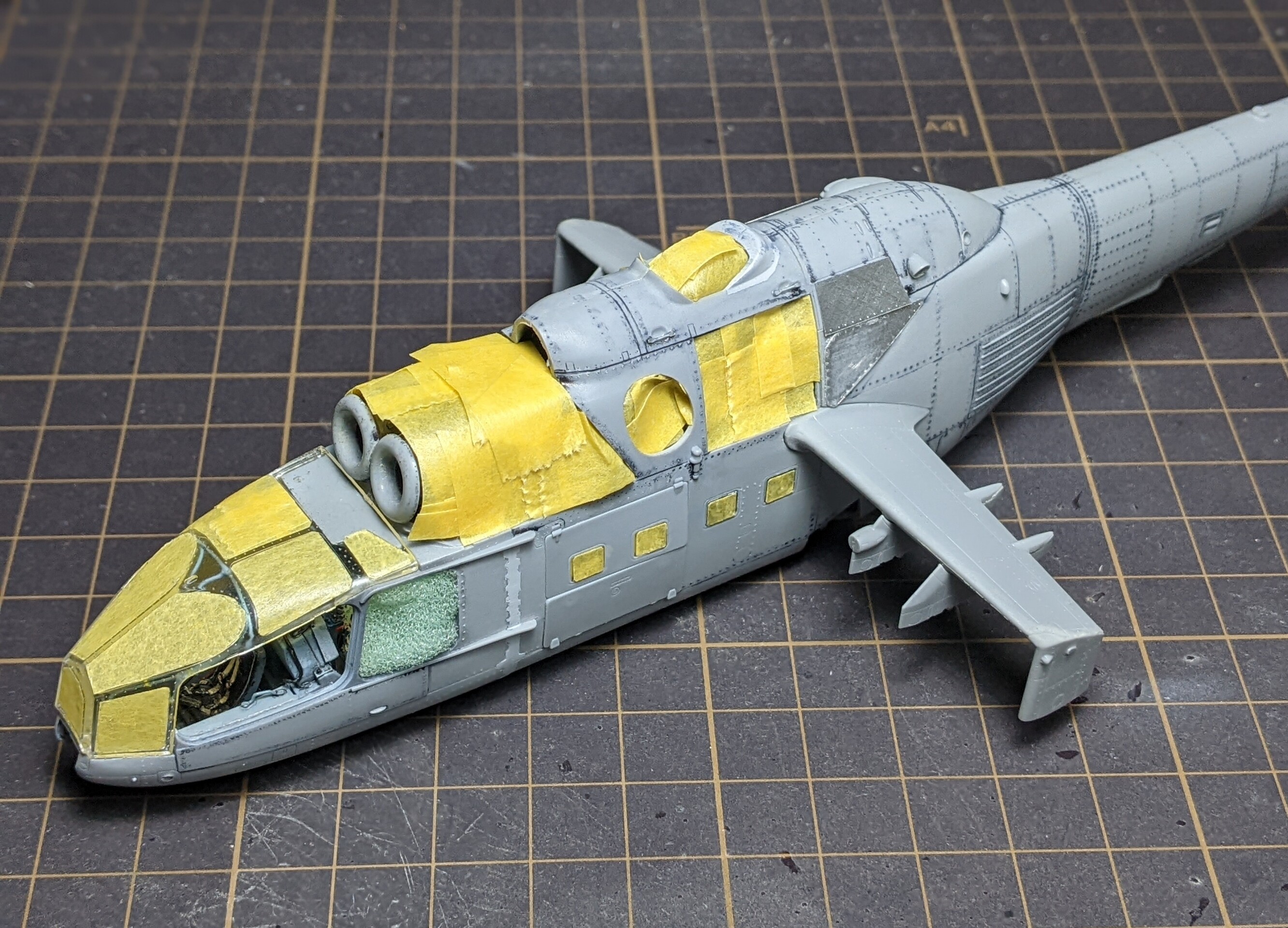 ⬇キャノピーの枠等は内装色で先に塗り、その後全体にサフを吹きました。