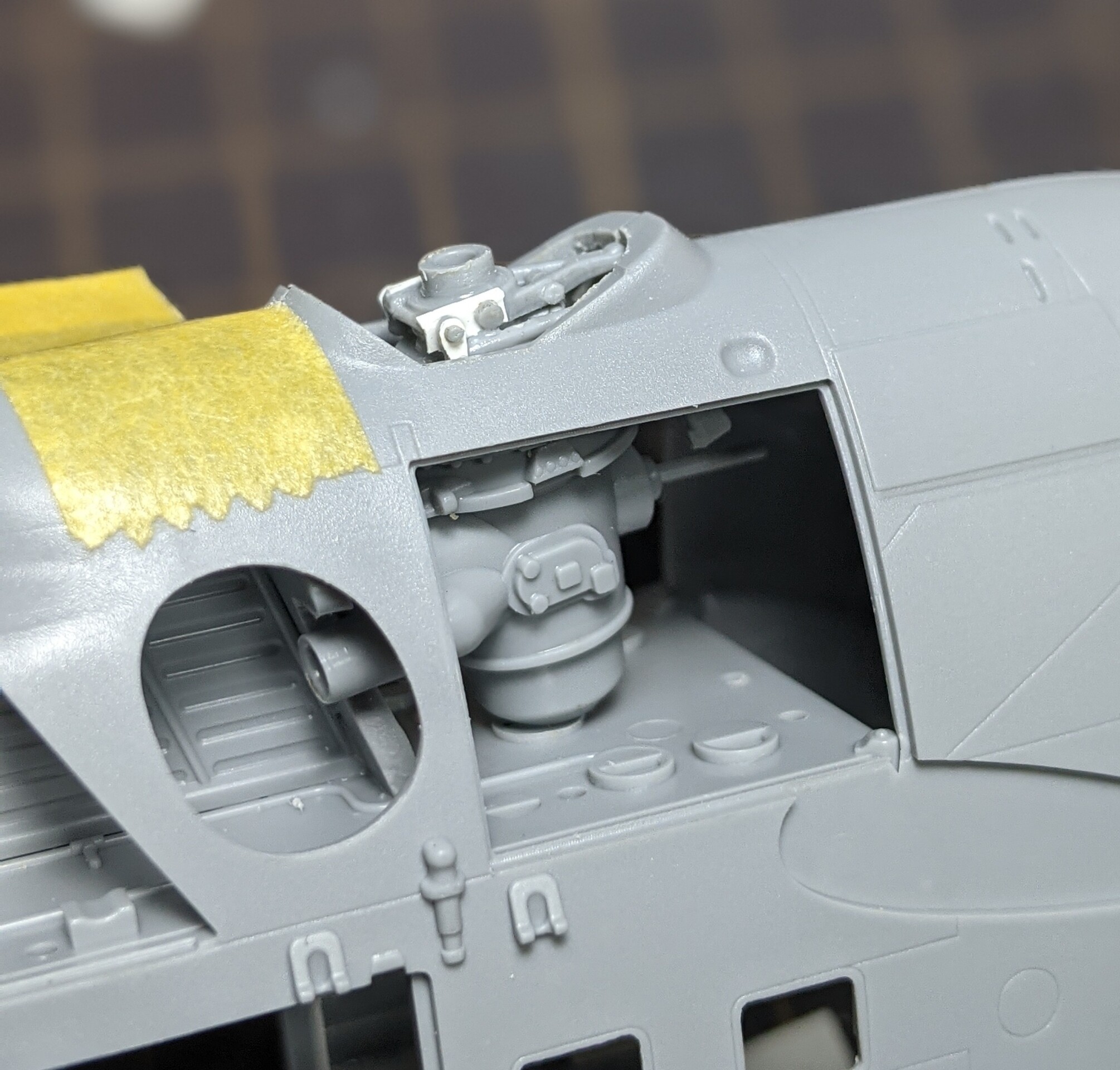 コクピット等の内装もまだ途中ですし、このサイズに少しづつ慣れてくると最初の部分を作り直したくなってくるので、その辺を修正するか思案中…