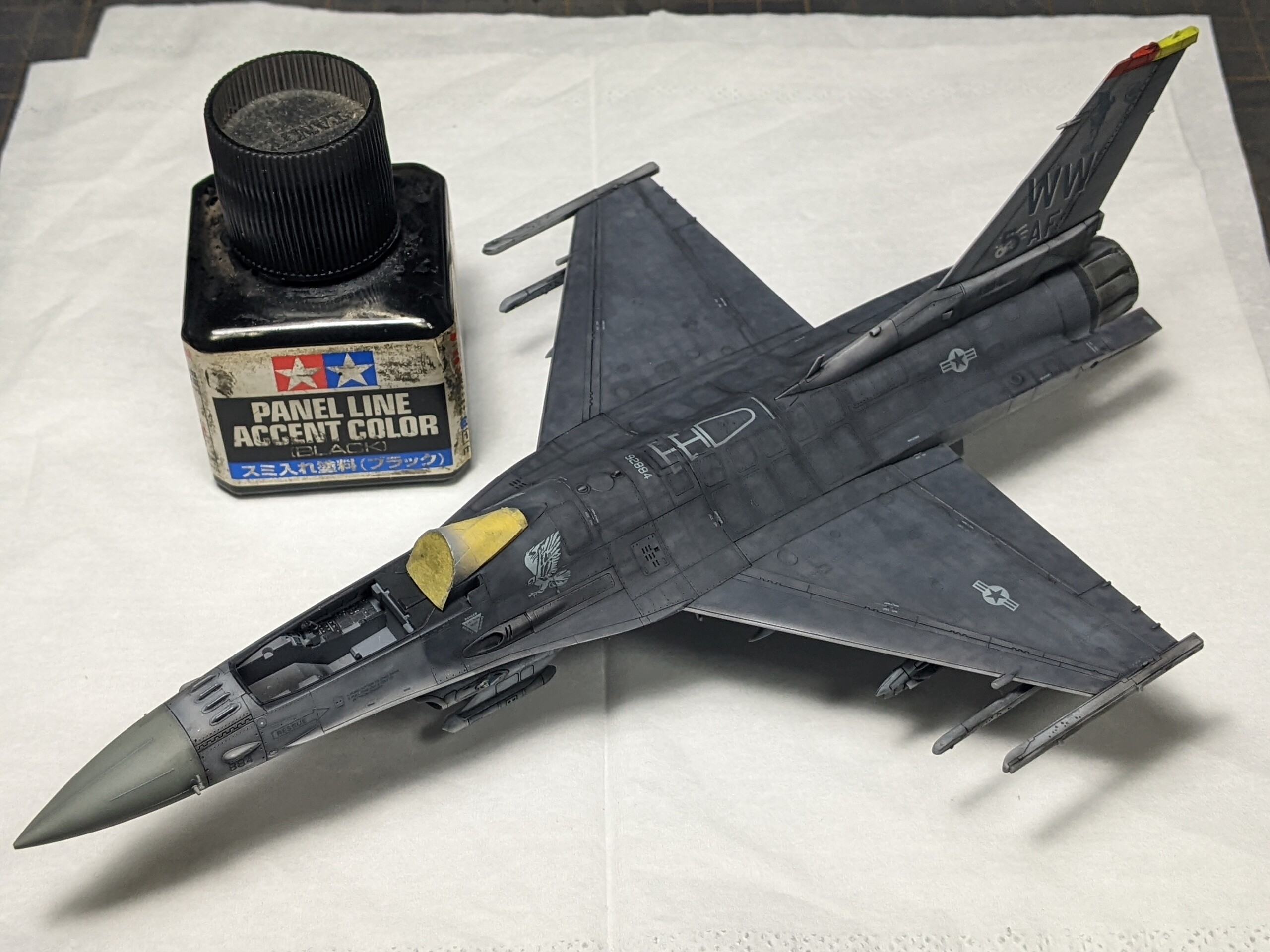 タミヤスミ入れ塗料のブラックを使ってパネルラインや各モールドの強調をしました。