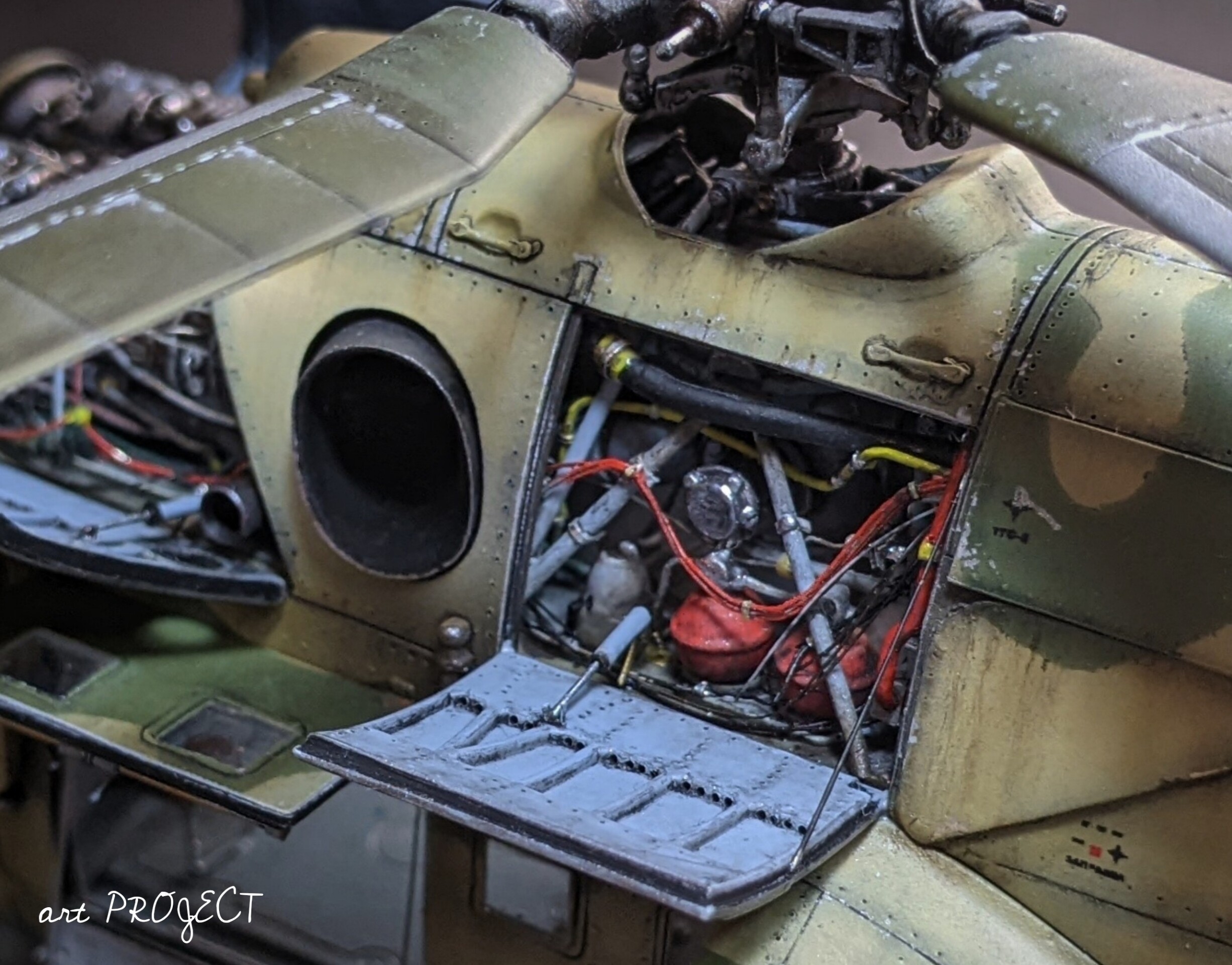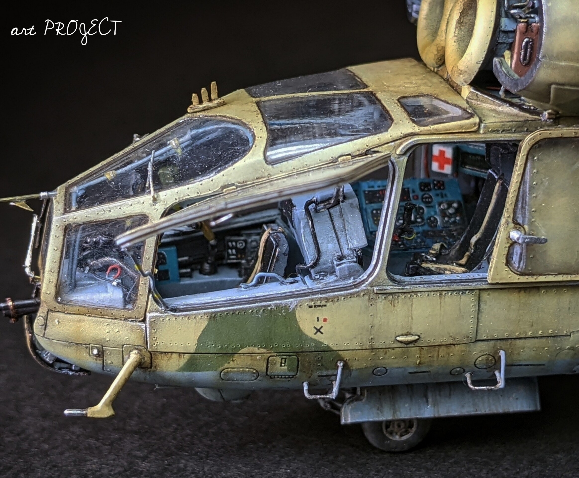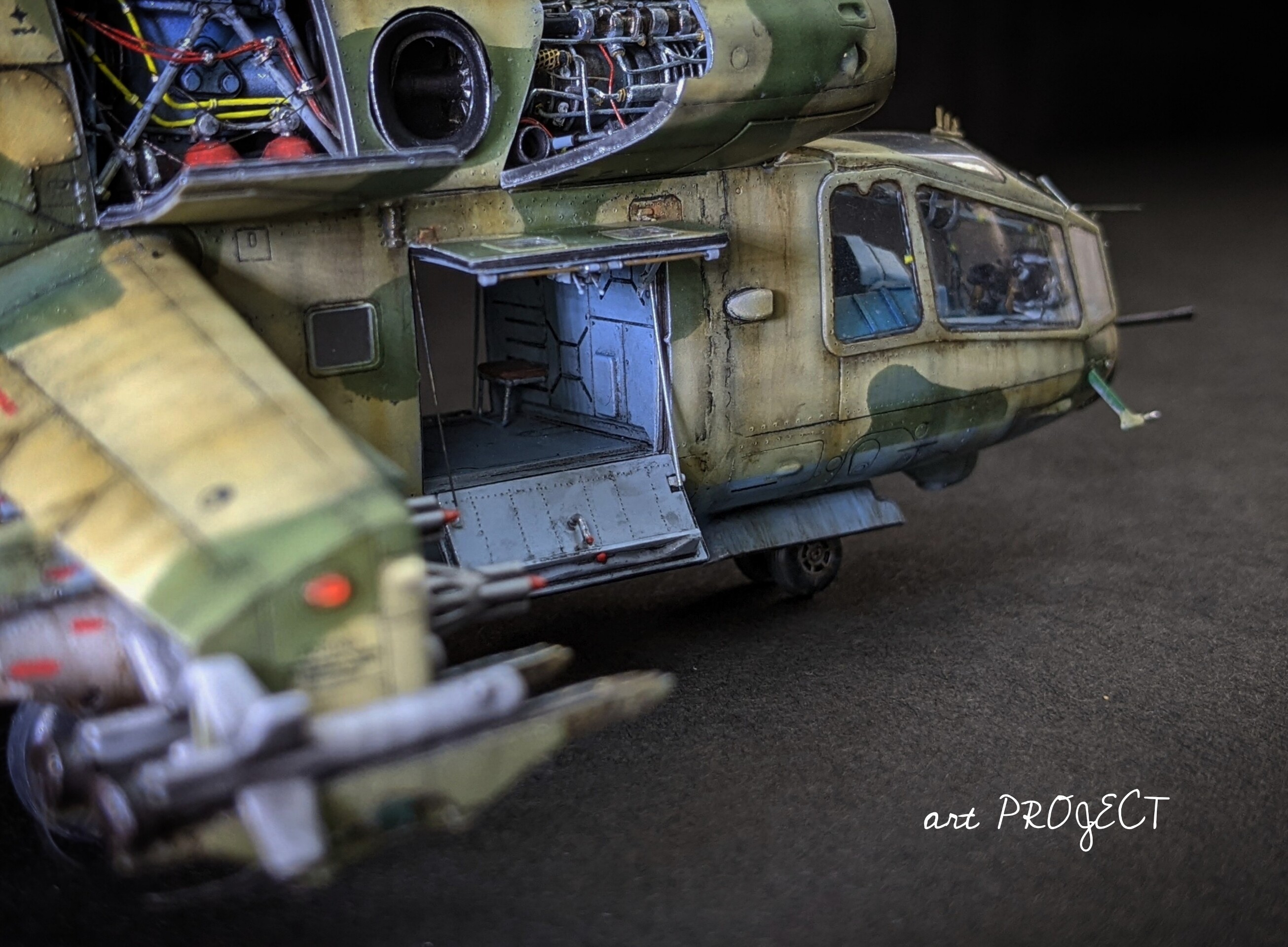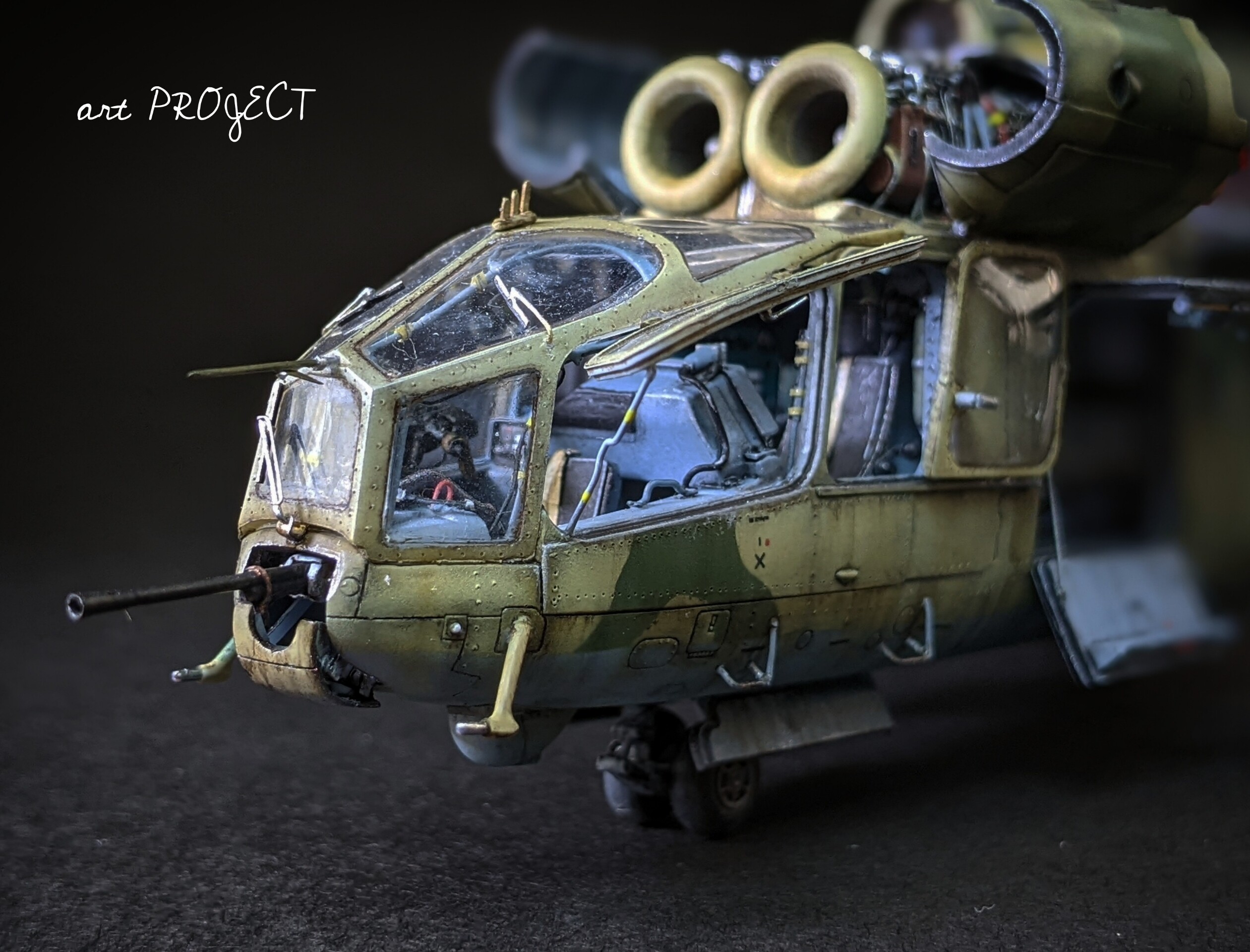 かなり重厚感のあるヘリで、恐らく攻撃ヘリとしては大柄だと思うのですが、このキットはそんな雰囲気がとても良く再現されていて、キットメーカーの自国のモチーフだけあってほんとにこのヘリが好きな人が作ったキットなんだろうなぁと感じます。