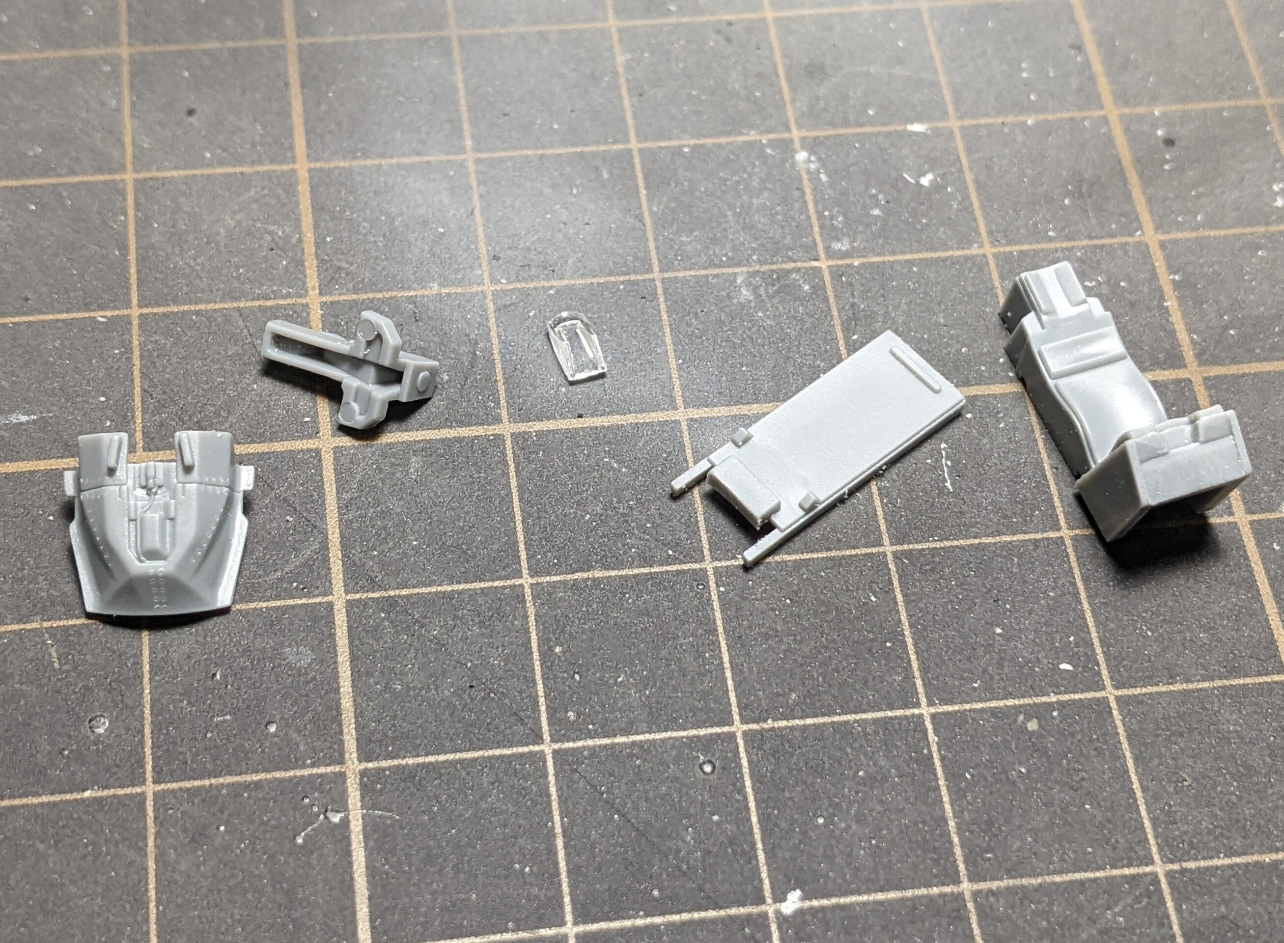 エアブレーキの凸がノズル塗装の邪魔ですし、塗り方が下手なので小さくて裏表のある物は根元が鮫肌になる事があるので⬇こんな様子でバラバラで塗ろうと思います。