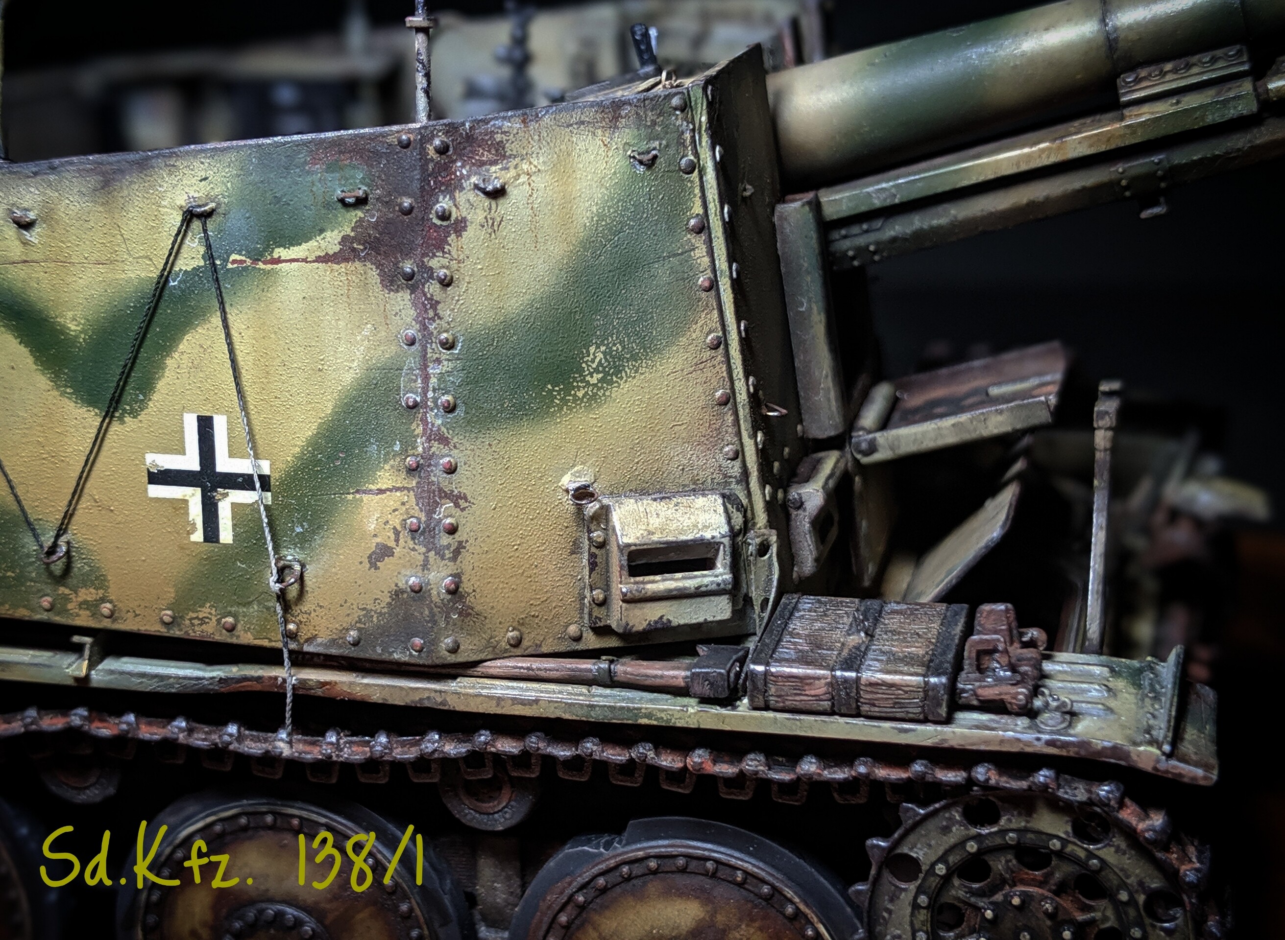サフの工程で、ワザと表面を凸凹にしたり、要するに鉄板を表現するために各部位で質感を変えているのですが、意図しない塗装の失敗が目立ちます。